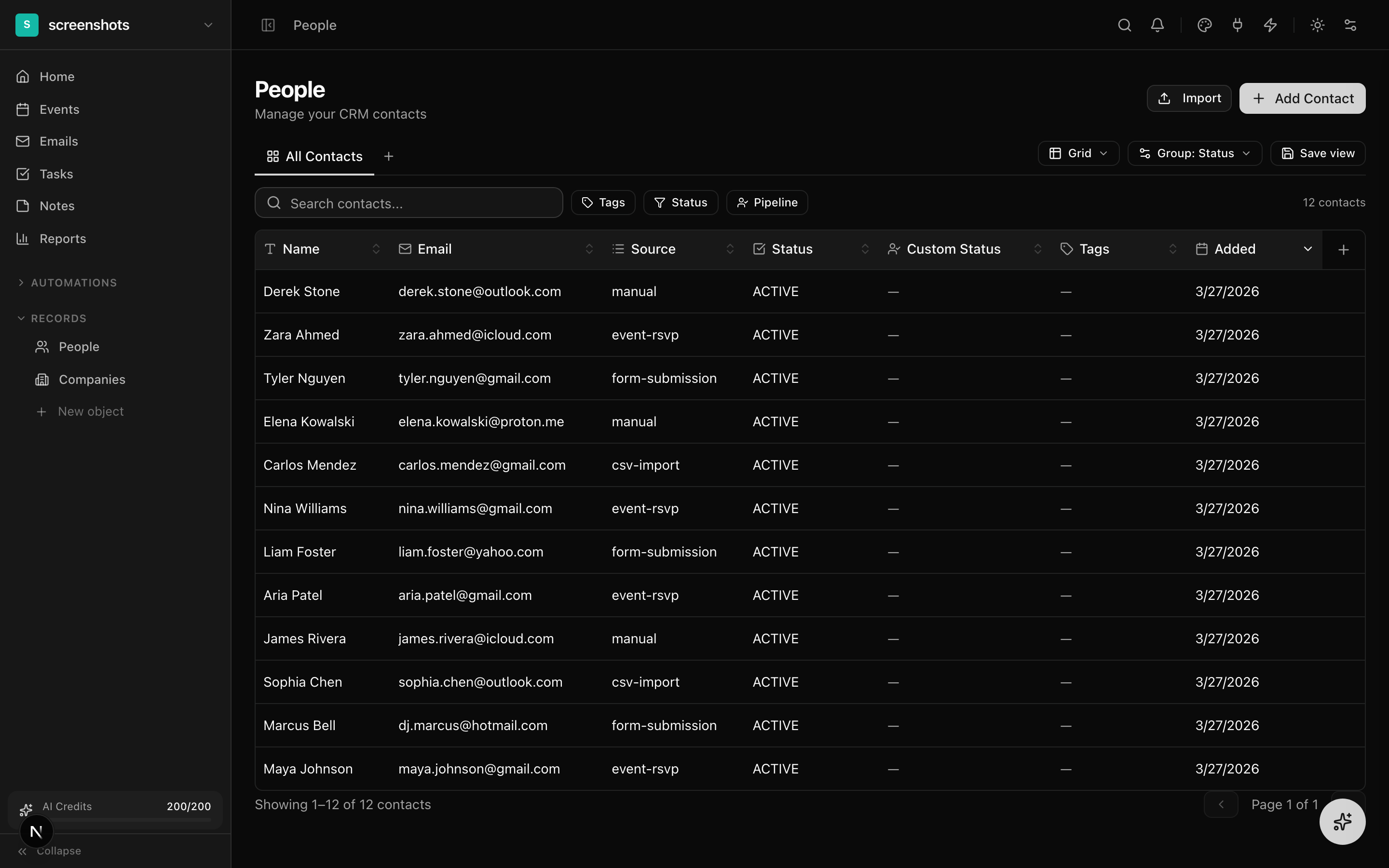 Upload a CSV or add contacts manually. Map fields to our schema during import.